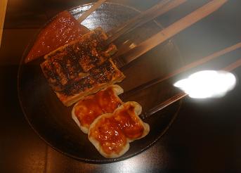 後は当時の食べ物「だんご」、「蒲焼っぽい物」とか