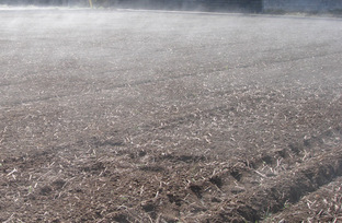 土から白い湯気のようなものが出ていました