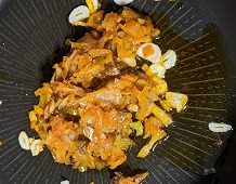 ”鶏肉と栗"を合わせ煮込みも、大ぶりのキノコ(しいたけ?)が両者の食感を取り持ってくれて、食べた事のない意外な味わいに。