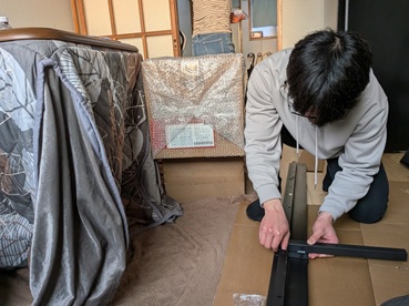 下の階に住む長男の手も借りて、什器と生活用品を住まいのあちこちに配置していきます。