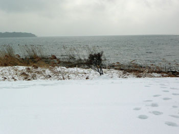 踏み外せばひざまで埋もれてしまう雪原を前に歩いた人の足跡の通りに(でも初めの一歩が左右逆だったみたい…)歩く事約100メートル