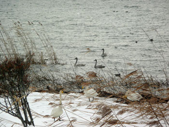 2人ともに靴下までグショグショに濡れた事も時間も寒さも忘れて白鳥を眺めていました