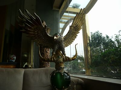 もう一つの写真はロビーにおいてあった置物。何でも金色。Cityの中にある大きなビルの屋根は全て金箔で出来たものもあります。金の相場は全世界共通ですが・・・