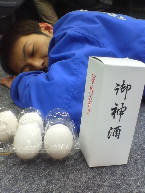松「おいおいイマベン、会社で寝るんじゃない!」 今「まつもろひゃ〜ん。世界がぐるぐる・・・」 松「ん???酒臭い。おい!仕事の時間に飲酒したな(怒)」 あぁ、これには理由が・・・