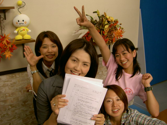 | ←左から ★CC9ニュースNEWキャスターhoshiさん ★笑顔でパッチリお目が見えないぞ♪ NEWスタッフiwaiさん ★かわいい笑顔が素敵な看板娘niimuraさん ★『たのひ』に出演したマラソン大好きyonezawaさん