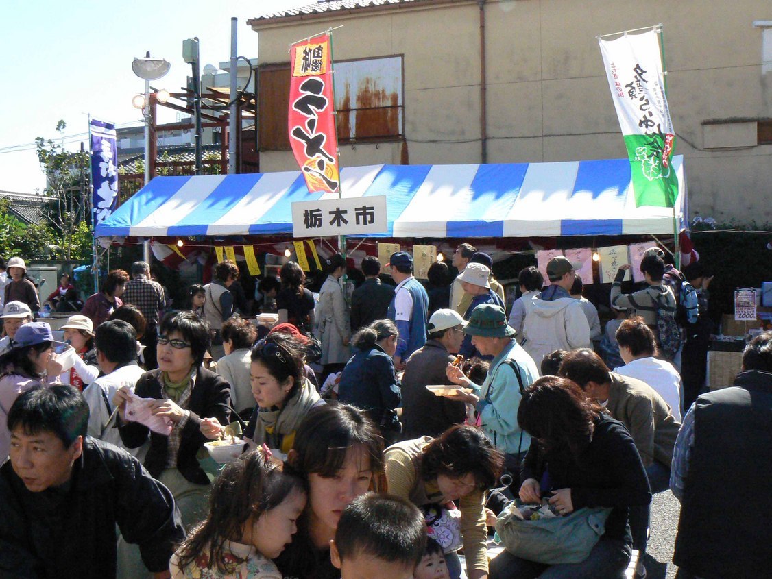 ←栃木市のブースも大人気 会場ではこのほか各種模擬店・お土産品販売が行われていました。小江戸つながりで栃木市のブースも出店していました。一杯300円の夕顔ラーメンに行列が!栃木の魅力も観光客の皆さんに知って頂くことができたようです。