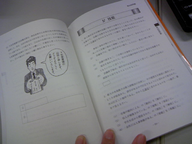 試験は11月、残り1ヶ月といったところで、社員全員にテキストが配られました。試験の内容は「必要とされる資質・企業実務・対人関係・技能」の4つの範囲に分かれており、なかなかハイレベル。記述式の問題も多いので大変です。