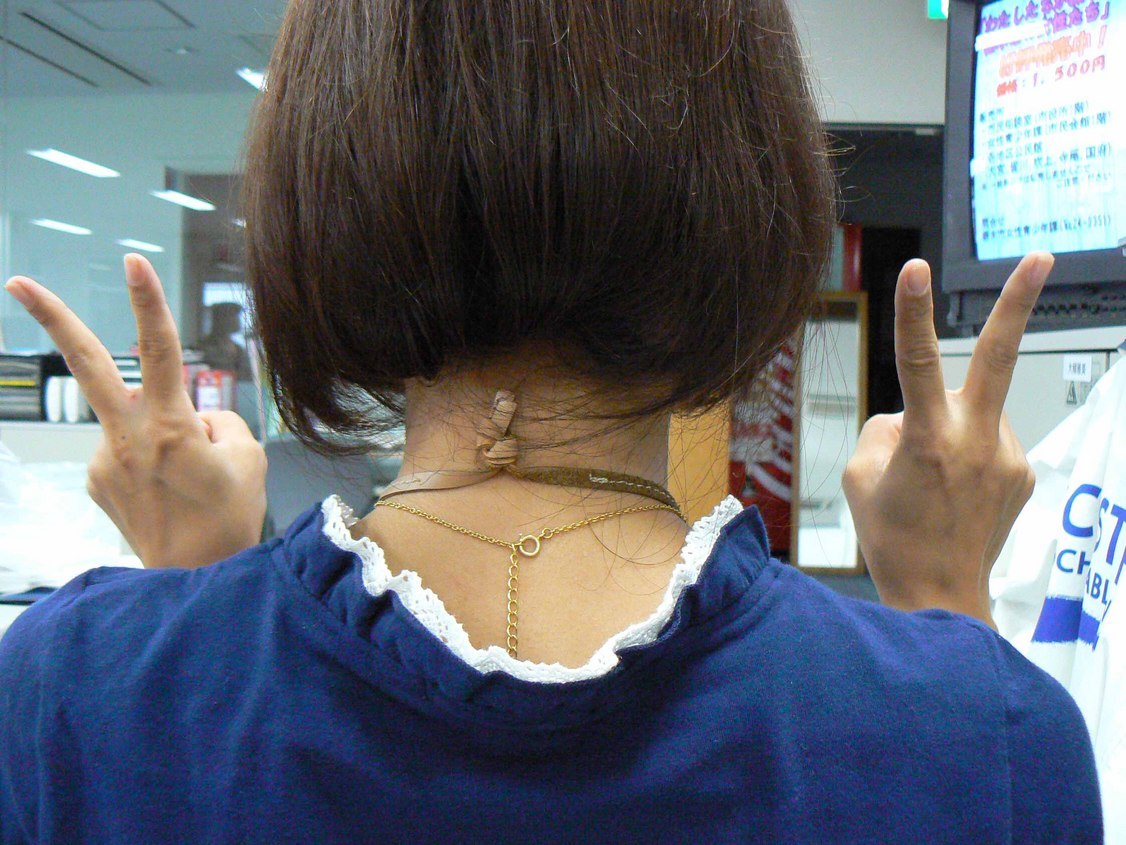 毎週木曜日はCC9ニュース収録前に、ジャスコ栃木店近くの某美容室にてヘアアレンジをして頂いています。バッサリ髪を切ったように見えますが、実は長い部分を束ねてうまく後部に隠してあるのです。美容技術って素晴らしいですね。