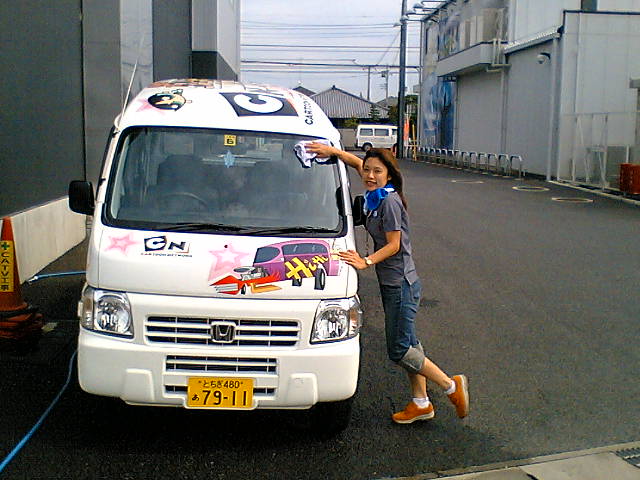 ちょうど洗車当番だったので涼しい朝のうちに作業開始。取材で使用する車はご覧のようにシールでラッピングしてあるので洗車機が使えません。地道に手洗いするのも骨が折れますが、ホースで水を撒くのもたまには気持ちいいものです。スニーカーを濡らしながらも作業完了。取材車はピカピカなりました!またこの取材車でCC9スタッフがあなたの街にお伺いします!(石田)