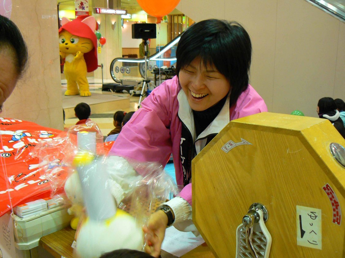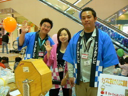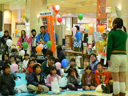 館林エリア初心者の私。ケーブルテレビのイベントが行われているアピタ館林店に到着したのはステージでのアニメキャラクターショー開始15分前!取材担当のスマイルちひろさんに「当日は手伝いに行くね!」などとイイ顔をしていたのは誰だっけ...。子供3人の手をひっぱり館内通路をさまよっていると、前方に見たことのあるスーツ姿が...しゃ、社長!?...子供にきゅ〜ちゃんの風船を頂きました。あっ、ありがとうございますっ!...恐縮ですがついでに会場の場所も教えて頂けますか...図々しい社員で申し訳ありませんが、何しろ急いでおります。