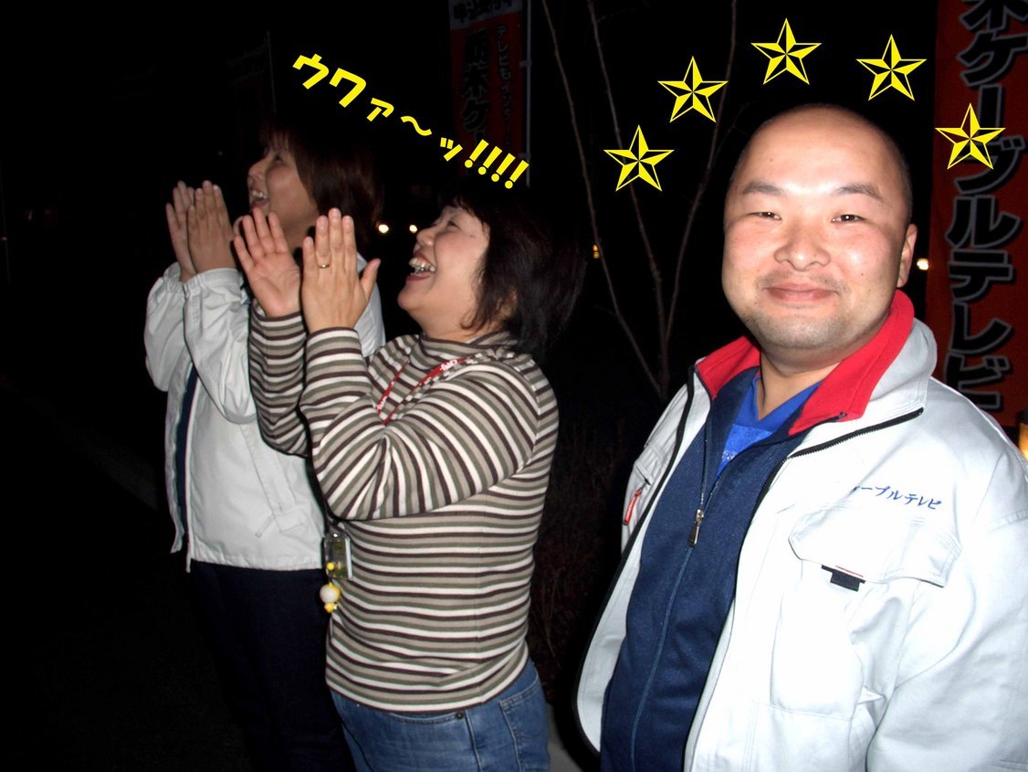 .....「すごい楽しみ!」「イヤ〜ッ緊張する!」.....じゃあいきますよぉ。スイッチオン!!.....「ウワァ〜ッッ!!!!!」.....何と技術部K係長が点灯????.....「オレって、カメラのフラッシュをよく吸収するんだよね」.....
