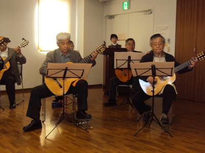 哀しみ本線日本海、 悲しい酒、 夜のタンゴ、 黒い瞳、 チャチャチャ・フラメンコ、 コーヒー・ルンバ、花は咲く、 四季のうた を練習 演奏会も終わり、通常なら新たな曲の練習に入るのですが、 ロータリークラブからの演奏依頼があり、主にその練習となりました。 演奏まで日にちもないので、昨年練習していた曲でプログラムを組みました。 しばらく弾いていないこともあり、3曲はもう二歩位の感じでした。 人間は忘れやすい動物なんだと、改めて実感します。 年のせいもあるのかも? 少し時間が余りましたので、新しい曲「花は咲く」、「四季のうた」をやってみました。 今日渡した楽譜なので、全員初見でしたが、全体の奏力アップにすこしうれしくなりました。 ボランティア団体から、昨年に引き続き、被災地での演奏にお誘いいただいたため、 「花は咲く」はいいのではと、練習曲に組み入れました。 今日は、キーボードなしでしたが、入るとかなり感じが変わると思います。 入ったときどういう感じになるか楽しみです。 次週は 哀しみ本線日本海、 悲しい酒、 夜のタンゴ、 黒い瞳、 チャチャチャ・フラメンコ、 コーヒー・ルンバ、 時間があれば 柿の木坂の家、高校三年生他