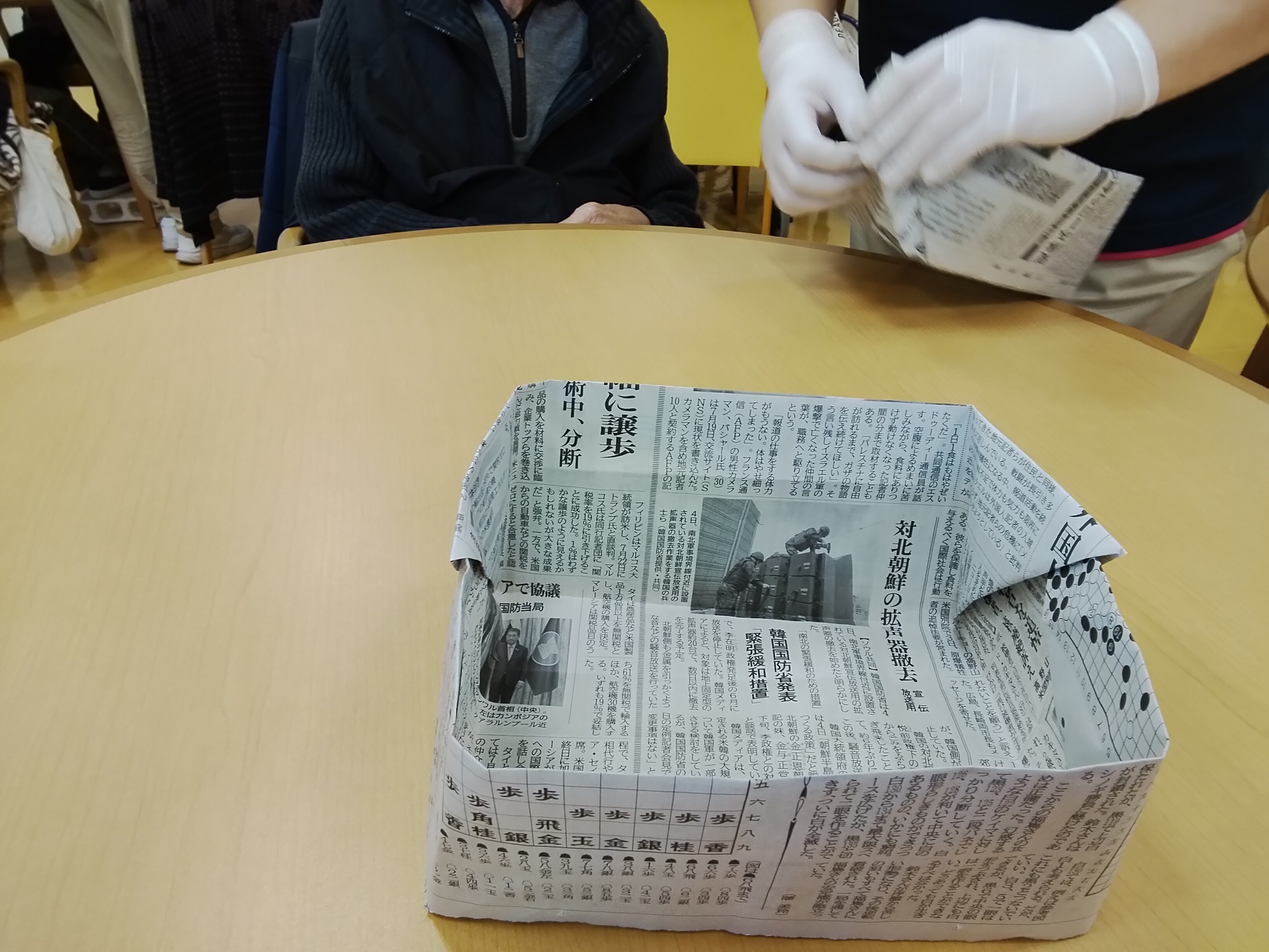 新聞紙で豆を容れるマスを