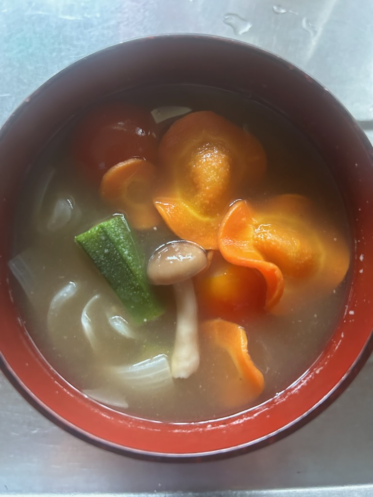 買ってきたトマトあまりおいしくないのでみそ汁に入れてます。
