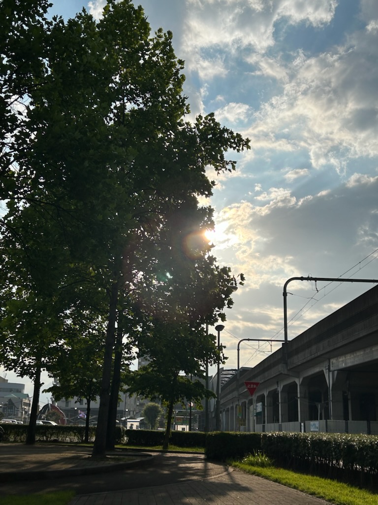 なるたけ、朝日を浴びるように歩きます。