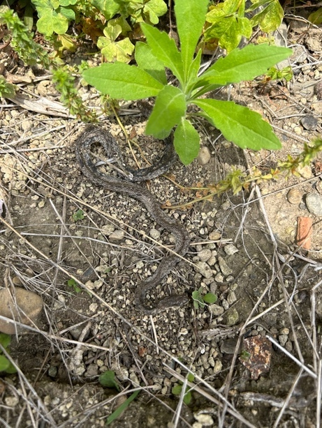 草を集めてたら黒っぽいひもが、風でとんできたんかな?と