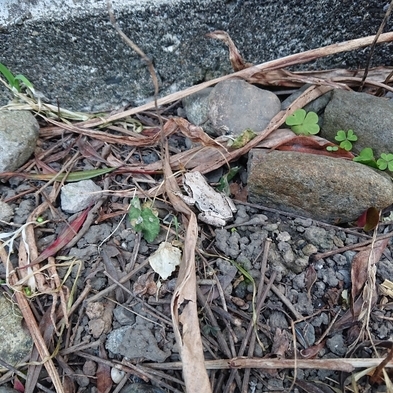 鎌を動かしていると 飛び出してきたカエルにびっくり!