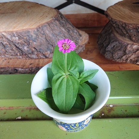 ひとつだけ大きくなってきた 百日草は途中で折れてる。