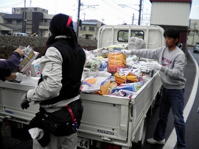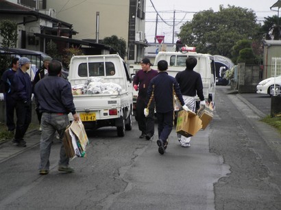 地元青年部「若富会」の面々も手馴れたもので次々に家々を廻っては荷台に積んでいきます。