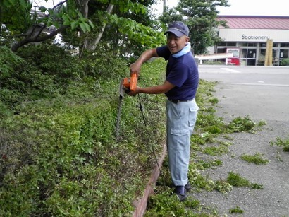 空もようやく夏の空になったような感じです。話は昨日のことになりますが、広瀬は午後1時から大平中学校に行っていました。植木の剪定作業をしに