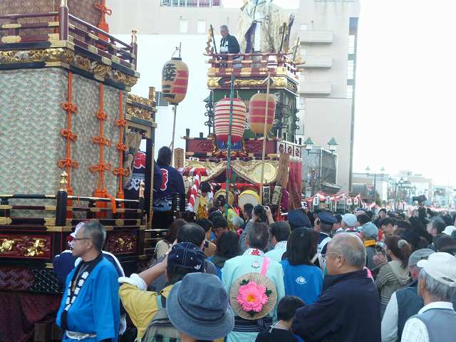 山車同士が鉢合わせになり繰り広げられる「ぶっつけ」 お囃子の勝負なんですが、山車を出す各自治会同士の面子もあってか好勝負が繰り広げられますし、非常に見ごたえがありまして、楽しかったですね。