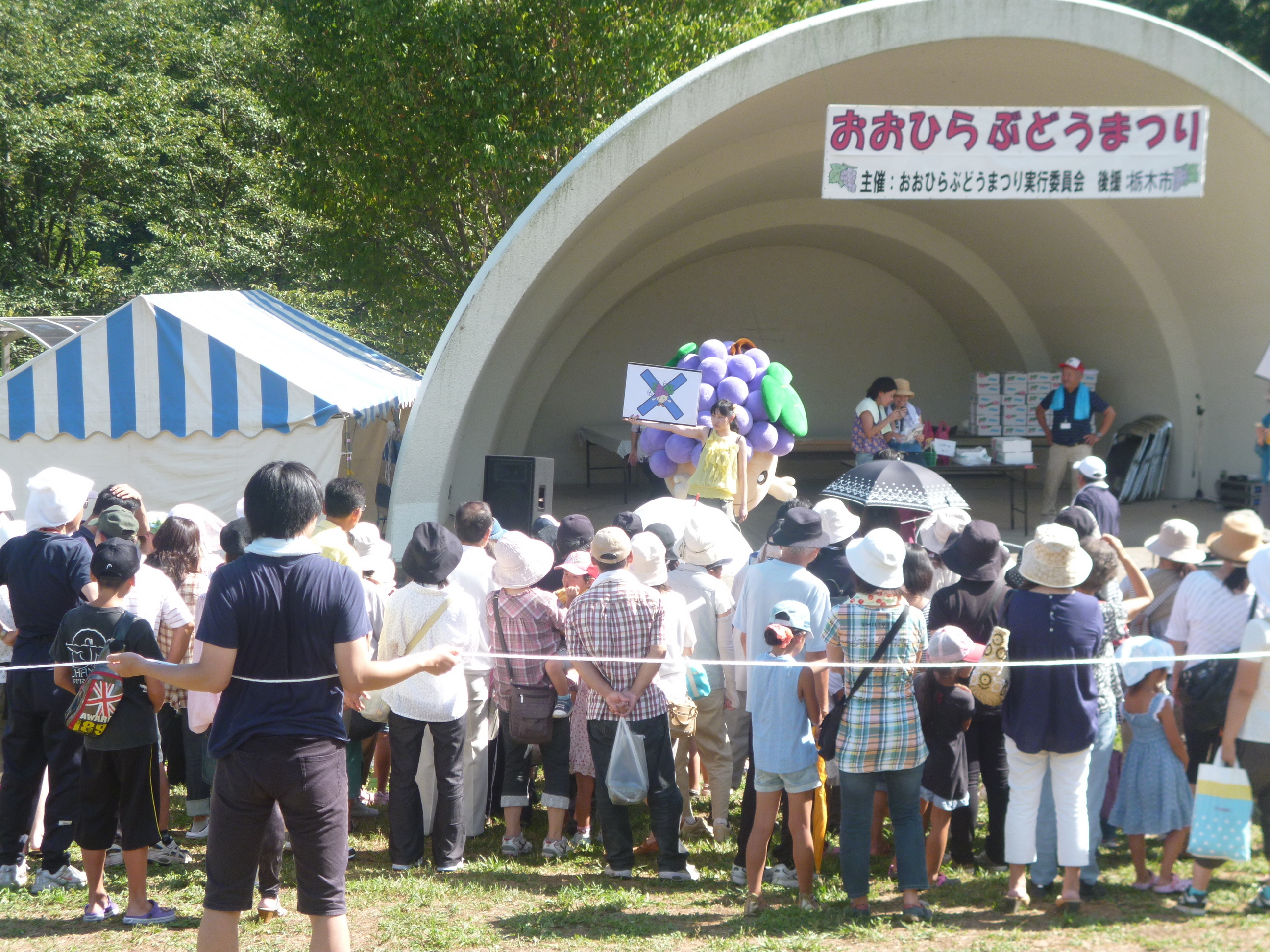 朝からずっと考えながら資料と格闘していましたが、午後2時の段階で、今日大平地区の西山田で「ぶどう祭り」がおこなわれているのを思い出しまして、顔を出してきました。 今日の画像は「大平ぶどう祭り」のステージの様子です。 暑い中、たくさんの人出でした。 関係者の皆さま、ご苦労様でした。
