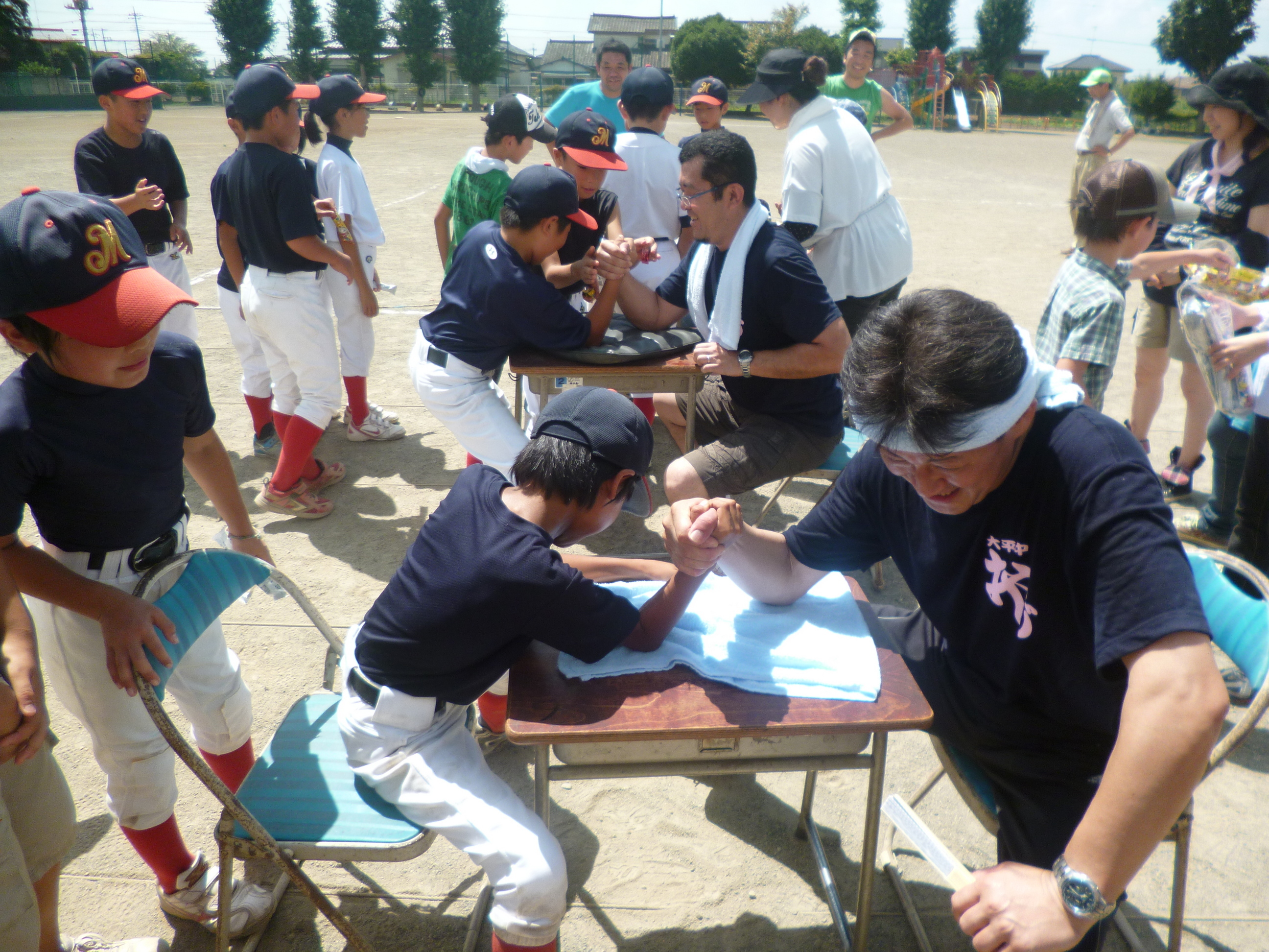 先生とお話をしまして ・ドッヂボール ・フットベースボール ・腕相撲 ・紙飛行機 ・スイカの早食い をおこなうこととなったんですが・・・・。
