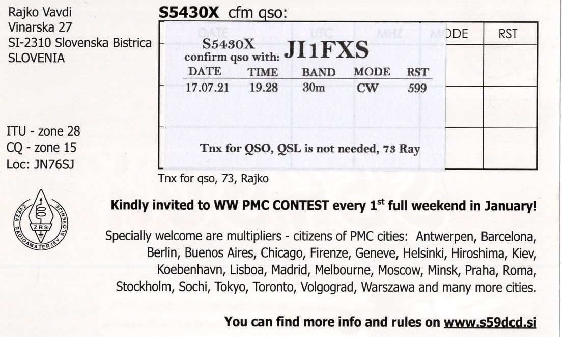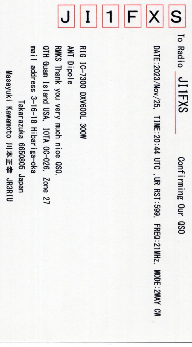 アマチュア無線の運用日記。近着QSLカード。QSO記録等。自分成りの気ままなページを目指してます。