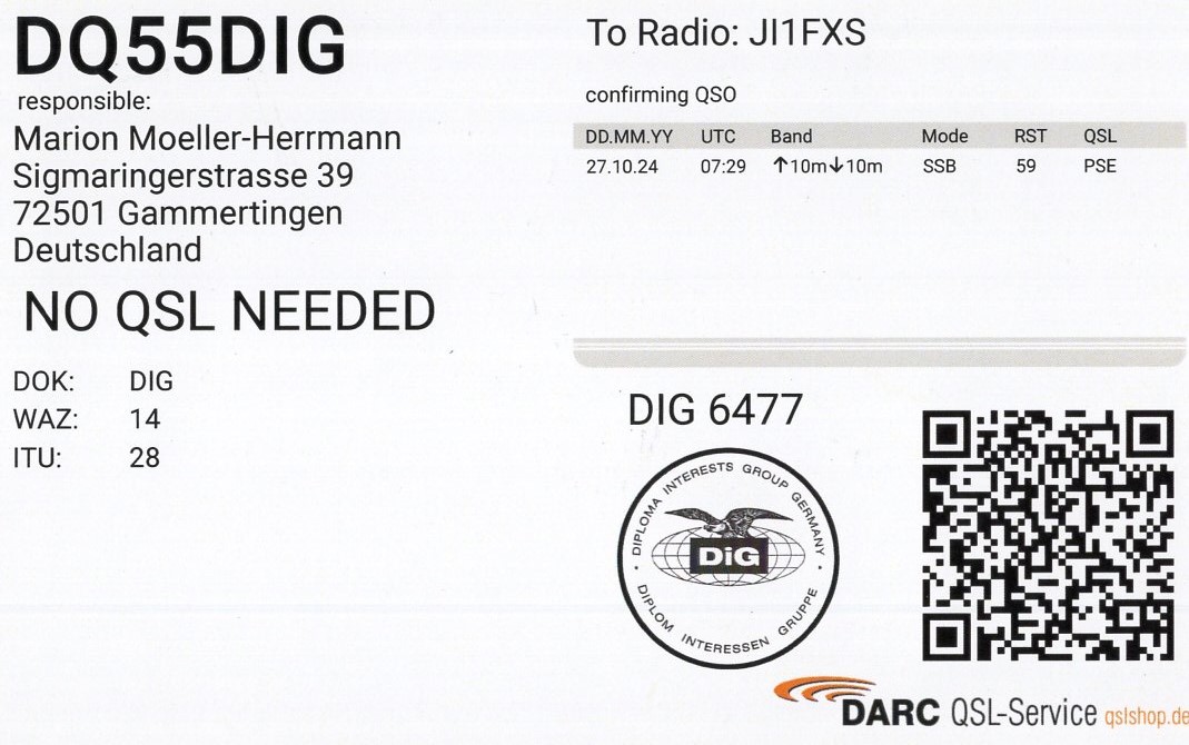 QSL:LoTW, QRZ.com, eQSL, Clublog, Hamlog