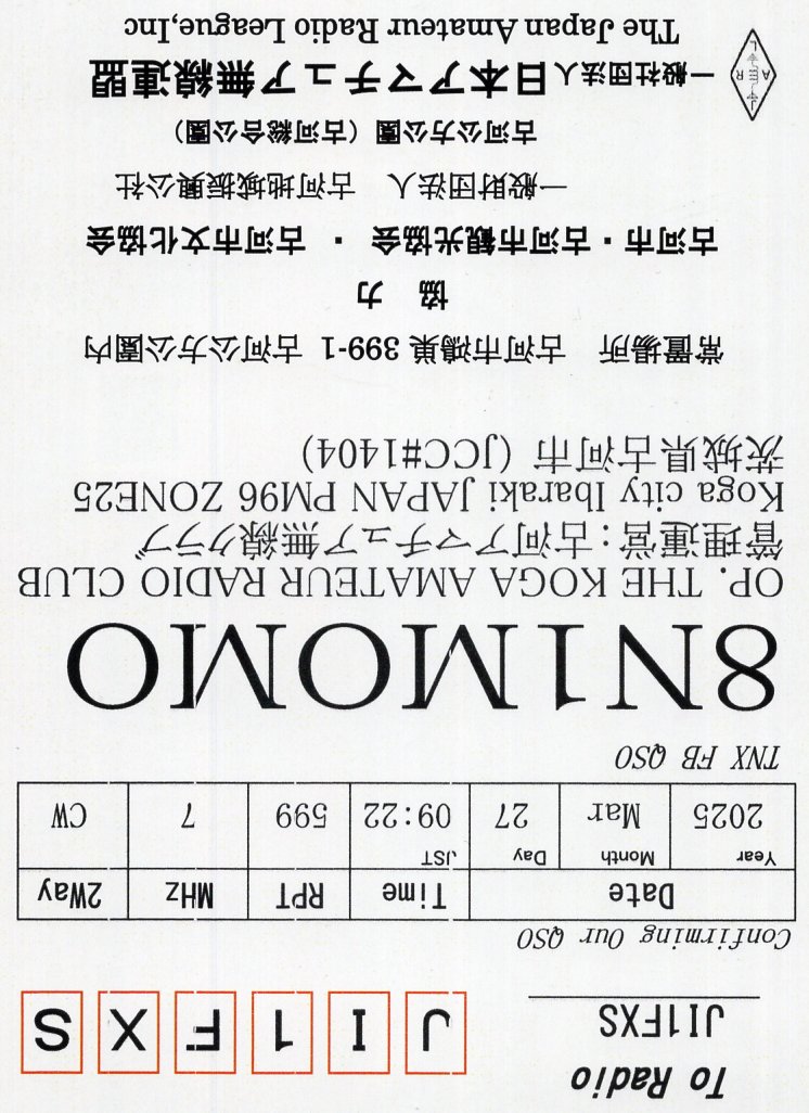 8N1MOMO(日本一桃の里「第49回古河桃まつり JARL特別局」) 27Mar2025に7MhzCWでQSO。 運用地:茨城県古河市鴻巣 古河公方公園内