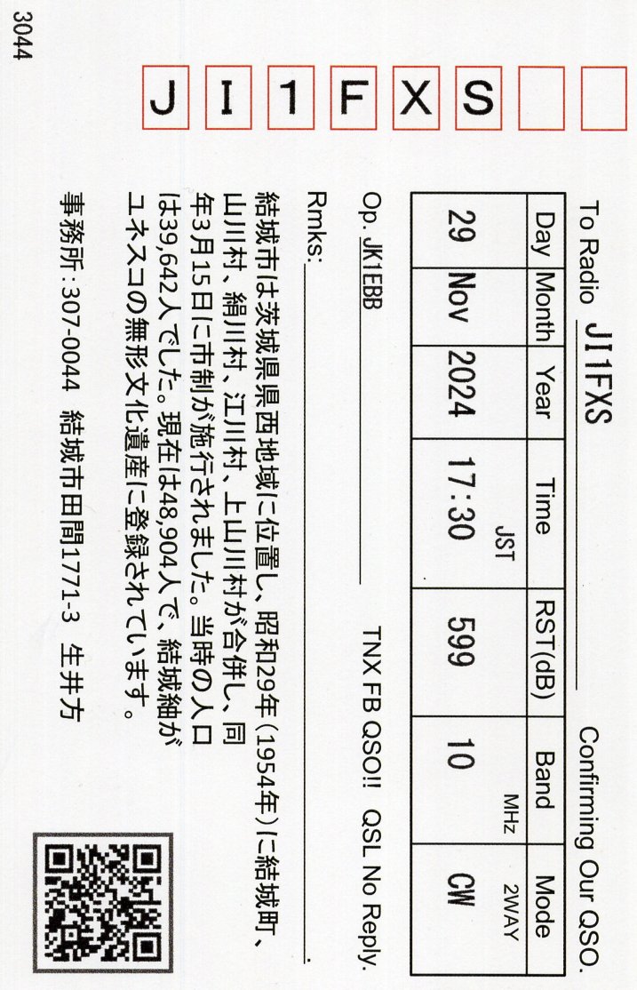 8N1YOTA/1(埼玉県南埼玉郡宮代町)QSL:JARLの会員には、JARL Buroより1Way