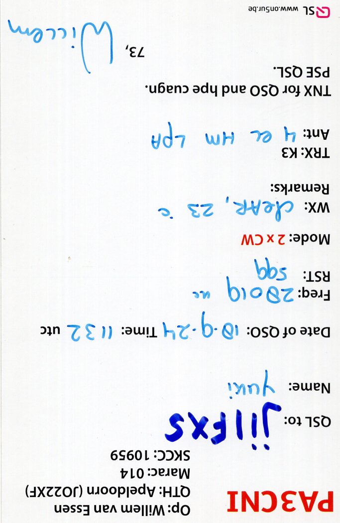 OE8DDX(Austria) 07Sep2024に18MhzSSBでQSO。 PSE QSLで到着。