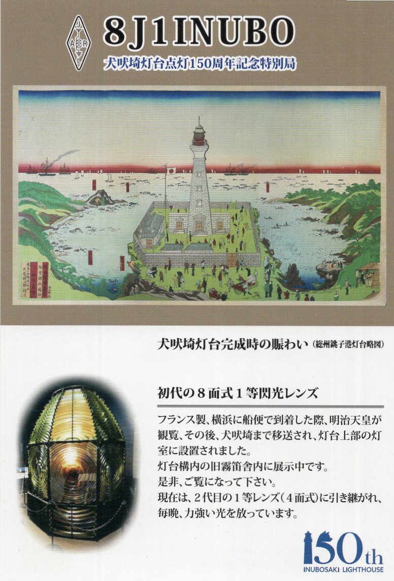 8J1INUBO(犬吠埼灯台点灯150周年記念特別局)