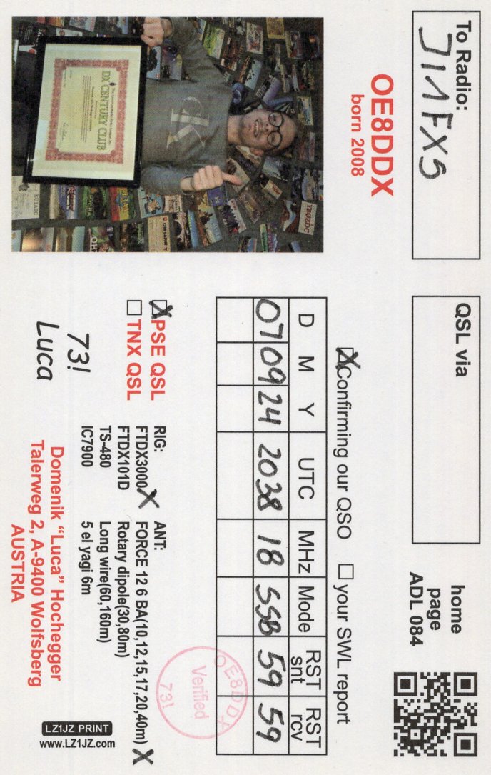 10MhzCW 4U13FEB(Italy)QSL Via 9A2AA II4AJMR(Italy)QSL:Direct. No Buro LoTWはOKの様です。 FR/G3JUN()Reunion Island)QSL:LoTW Direct Via JL8AQH 4L/DL2JRM(Georgia)QSL Via DL2JRM Buro