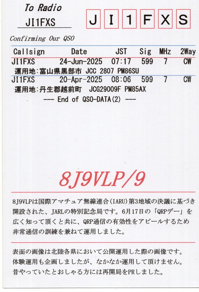 8J9VLP(QRPデー特別記念局)