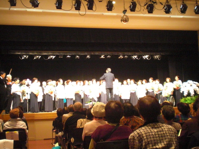 今日、午後より小山市の文化会館小ホールでの「Dr.フジイ第3回リサイタル」を見に出かけた小ホールとは言え400名あまりの席はほぼ埋め尽くされ開演前から熱気であふれていた第一部はDr.フジイが大好きな歌手伊藤久男の曲を5曲を熱唱第二部はみんなで歌おう 1、あざみの歌 2、あこがれの郵便馬車 3、高原列車は行く第三部はDr.フジイ指揮による合唱(いきいき合唱団 コールアナペーラ)第四部は特別出演 福島ハミングコールによる演奏・合唱かの有名な作曲家「古関裕而先生」は福島県出身、生涯で5000曲もの名曲を生みだした偉大な作曲者、今日はそのほんの一部を取り入れ故郷や母を偲び哀愁と懐古に浸った