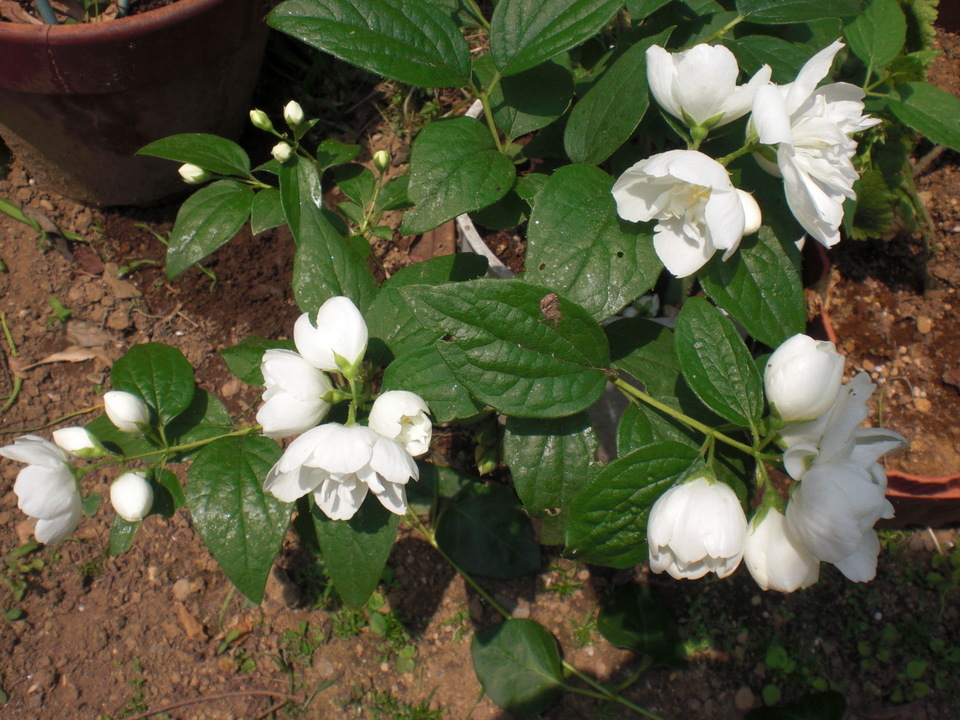 昨年その時に「バイカウツギだよ」・・・と、言って季節外れだが庭の鉢にウツギの挿し木をしてくれた