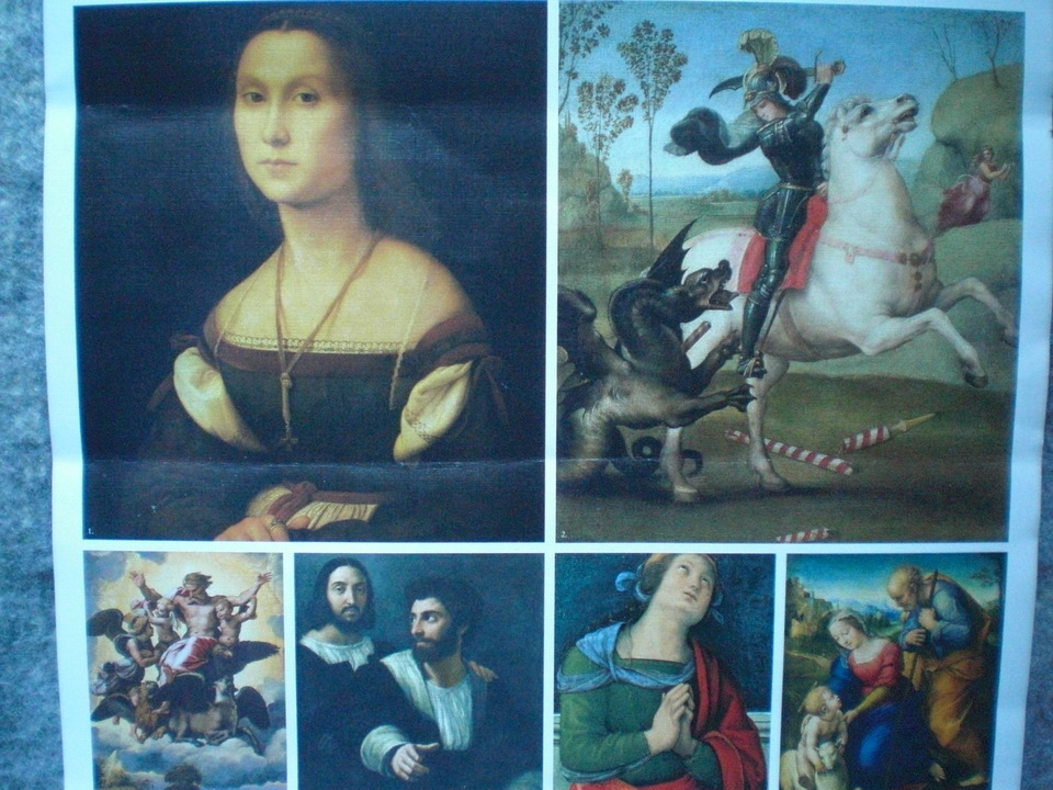 ラファエロは1483年イタリアの中西部のウルピーノで生まれ、宮廷画家の父親の指導のもと才能を発揮、成長し、後ペルージャのぺルジーノ、フィレンツの、レオナルド・ダ・ヴィンチ、ミケランジェロらの影響を受けながら腕を磨き、卓越した才能、美しい容姿、社交的な性格が貴族に愛されヴァチカン宮殿の壁画を制作するなど、栄光を手にするも37歳という若さで世を去ってしまった。