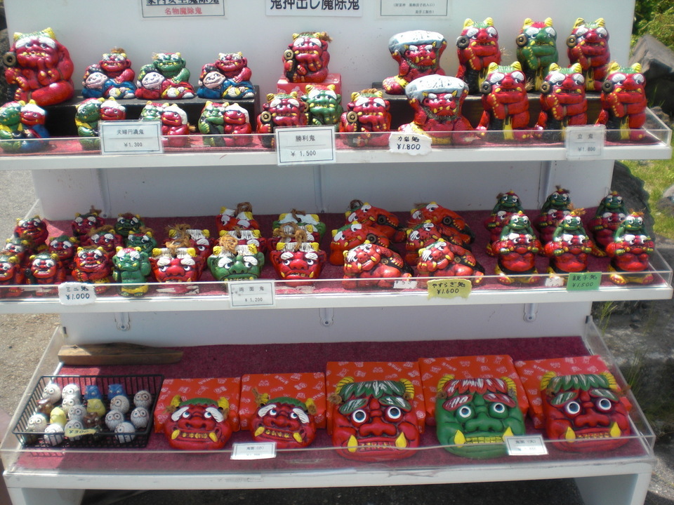 土産屋さんの”厄除けの鬼”って云うからさぞやコワモテノ顔かと思ったら、どうしてどうして優しそうな愛嬌のある鬼さん達がズラリと勢揃いしていて可愛かったよ