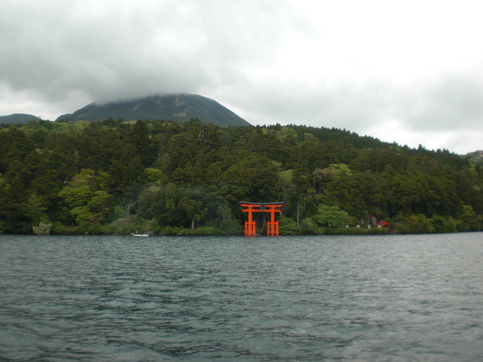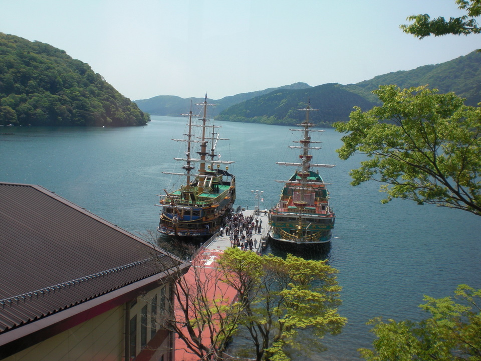 ロープウェが桃源台港に着くと、ビクトリーとパーサが出航をまじかにしている、やがて汽笛が鳴り鏡の様な湖面の水がザワザワとうねりを立て船は箱根町港に向かって桟橋を離れる