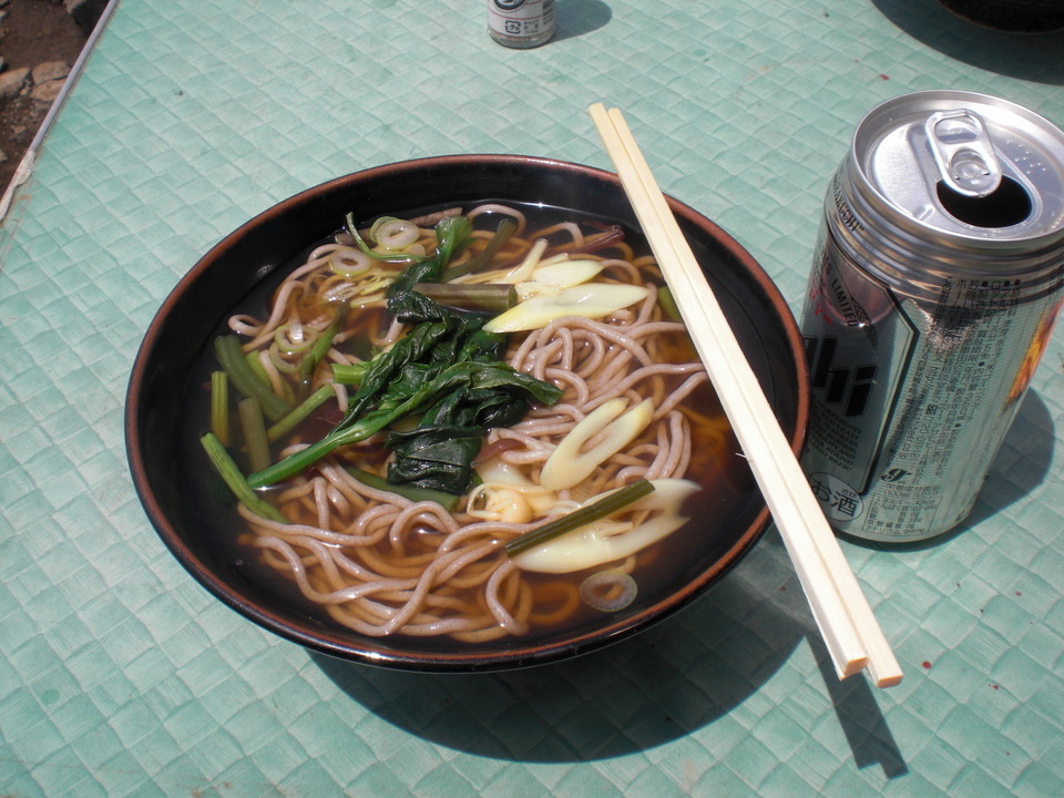 金時茶屋の名物「金時娘」?!(現天皇陛下が皇太子の時登山しその時の会話で金時娘の名になったとか)・・を拝顔してから山菜そばとカンビールで登頂の乾杯をした