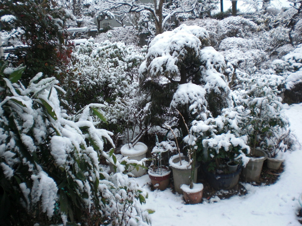早朝より降り出した雪、起きてみたときには廻りの風景はまるで墨絵を見ている様な光景になっていた、眠気と寒気がいっぺんに吹っ飛んでしまって。