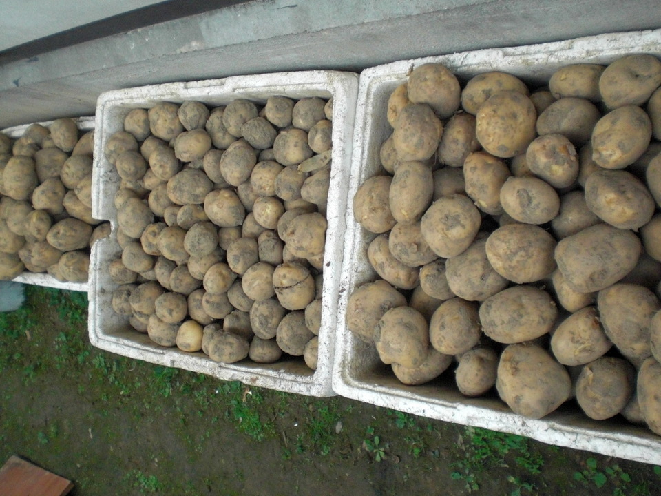 ヤッパ今日は農作業にしよう、今のうちにジャガイモ堀をしておかないと腐ってしまうかもしれないから、・・・と言うわけで、この箱で6箱掘ったけど・・疲れたぁ〜(>_<)