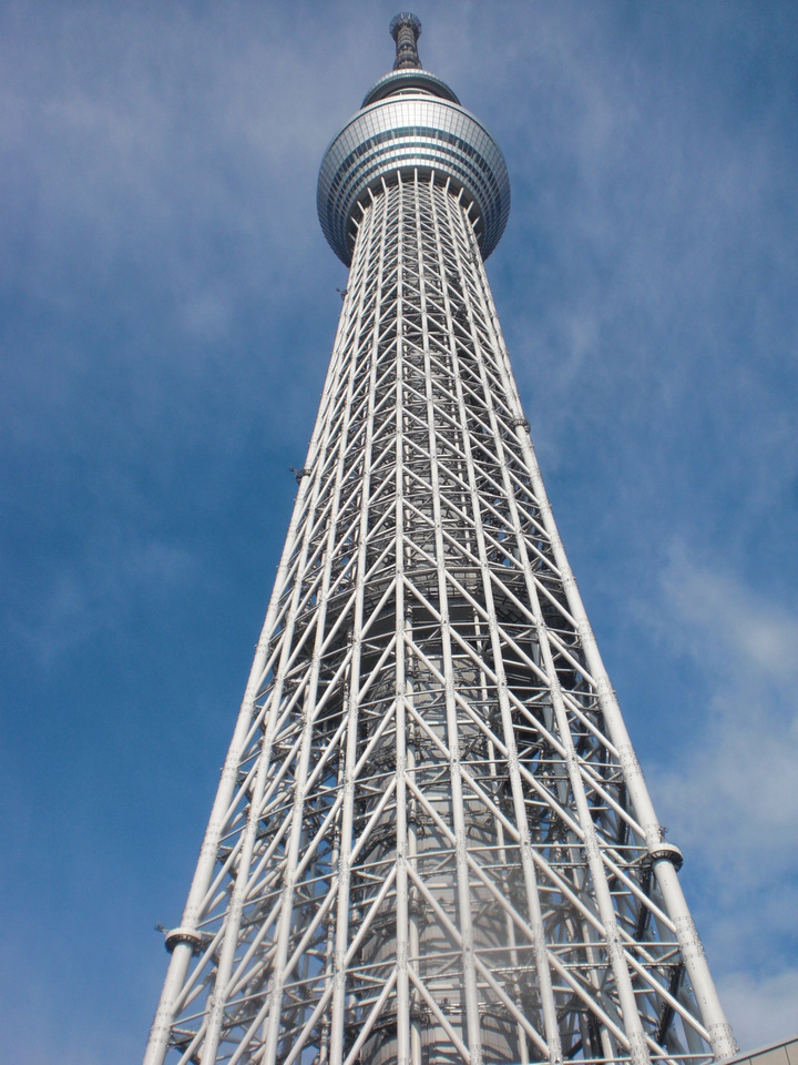それにしてもあの極太の鉄パイプ・・?の組み合わせ、三角形から始まって徐々に円形にになってゆく、中心には図太い円柱、日本の建築技術に感動せずにはいられない、昭和33年東京タワーが出来てから半世紀余り日本の技術の進歩に誇りを感じる、いつの日かすいてる時を見て展望台に搭乗してみたい・・・・それも元気なうちに・・!!