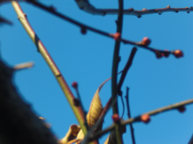 その横に植えてある「紅梅」の木の枝を見ると蝋梅よりも小さな蕾が付いていた、毎年綺麗に咲いてくれるのを楽しみにしているよ。