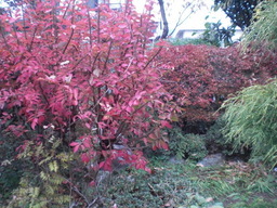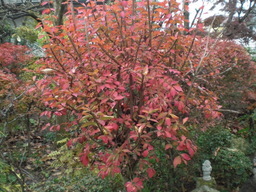 朝晩だいぶ冷え込むようになってきたせいか庭木の紅葉も一段と色濃くなってきた、昼夜の寒暖の差がまだまだ弱いせいかニシキ木もドウダンツツジも赤みが物足りない。