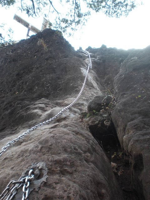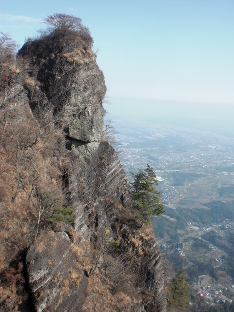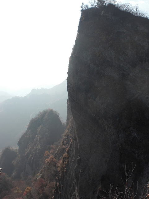 遠くから眺めていたのと実際に登ってみるのとのそのギャップに驚かされた、神社に登山のお参りをした後登り始めたが登山口よりいきなり急な山道、そして奥の院からは絶壁の岩盤を鎖一本に命を預けて足場のない不安定な岩面を7〜8メートルよじ登る、まさに腕の力と握力のない人は登れない危険な登山で、そのような場所があちこちに何ヶ所もある。