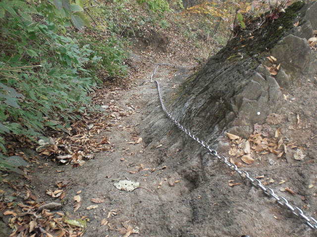 歩く山道は狭く一歩踏み外せば断崖絶壁を数百メートル下にまっしぐら、正に、一巻の終わりだ・・クワバラクワバラ