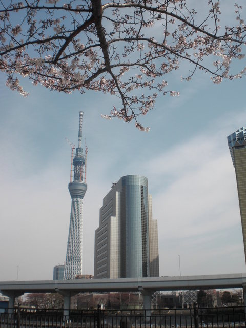 川辺にどっかと座り目の前をのぼり下りと行き来する遊覧船や、ポンポン船を眺め又、遂に世界一となった(3/18,1時34分)東京スカイツリー電波塔を仰ぎ見ながら、日ごろの蓄積したイライラを解消しよう。