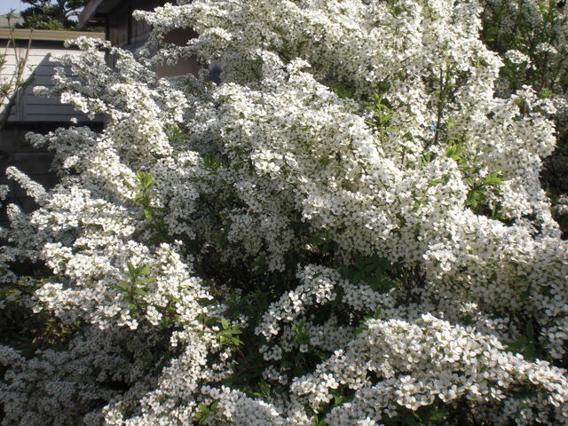 ゆきやなぎは今がちょうど満開、小粒な花が隙間なく無数に咲いている。